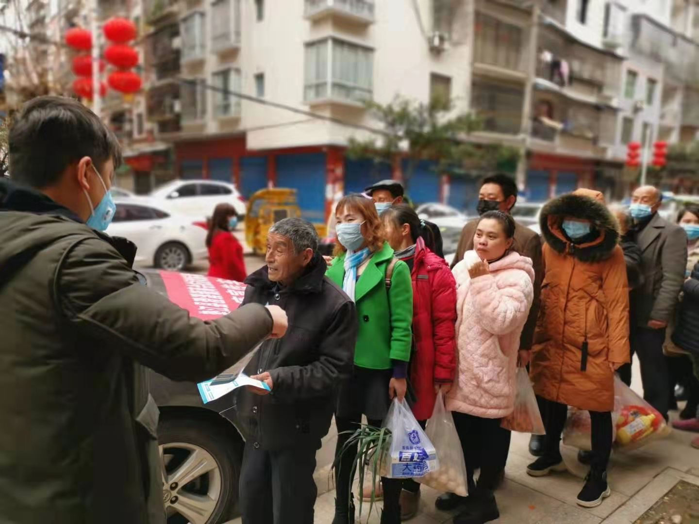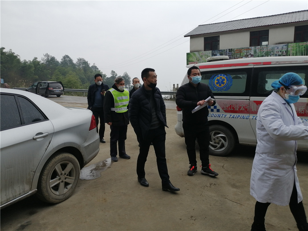 太平镇人大代表、镇长洪世新与卫生院医生排查太平过境路过往的车辆和人员情况