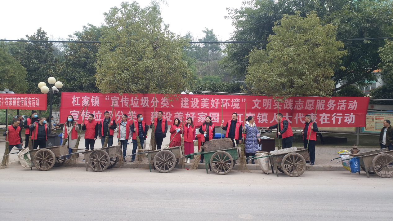 3月4日上午,杠家镇组织部分县、镇人大代表在杠家镇场镇开展“宣传垃圾分类,建设美好家园,杠家镇人大代表在行动”主题宣传活动。