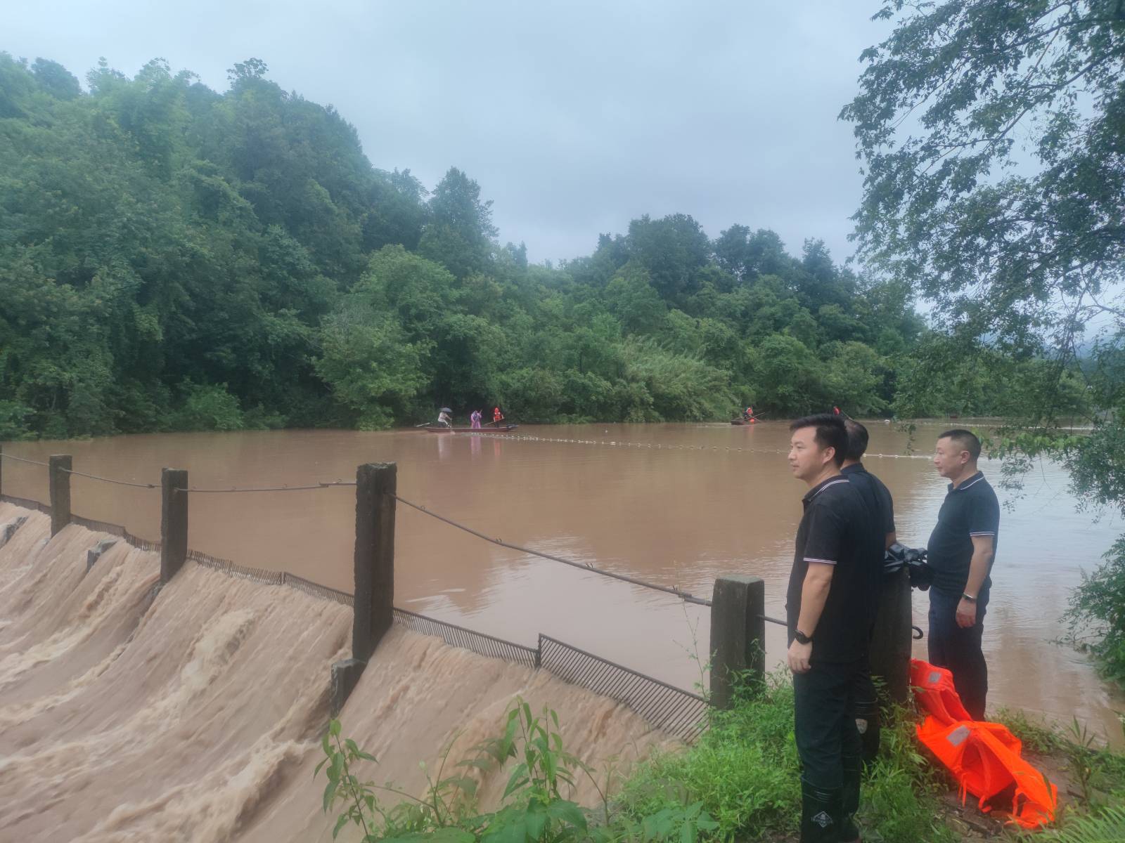 县人大常委会副主任章华荣在杠家镇督导防汛工作
