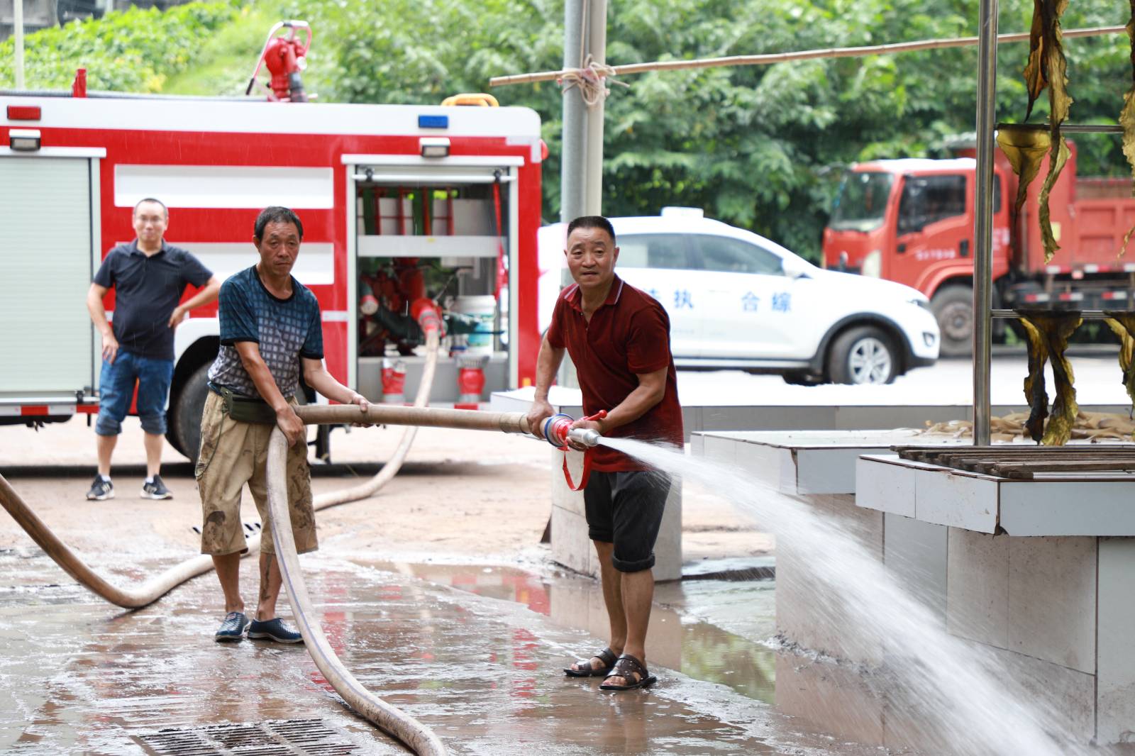 据了解,镇农贸市场被淹最高水位达1.5米,路面积存了大量淤泥和杂物。镇人大代表志愿小分队中10名队员第一时间赶到现场进行全面清淤、冲洗、消毒。他们或使用铁锹将淤泥逐堆铲起,或手拿扫帚几人合力推扫泥水,或用水车、水管冲洗垃圾脏污,经过3个多小时努力,农贸市场基本恢复原貌,确保了赶场天集市正常运营,群众日常生产生活物资正常供应。