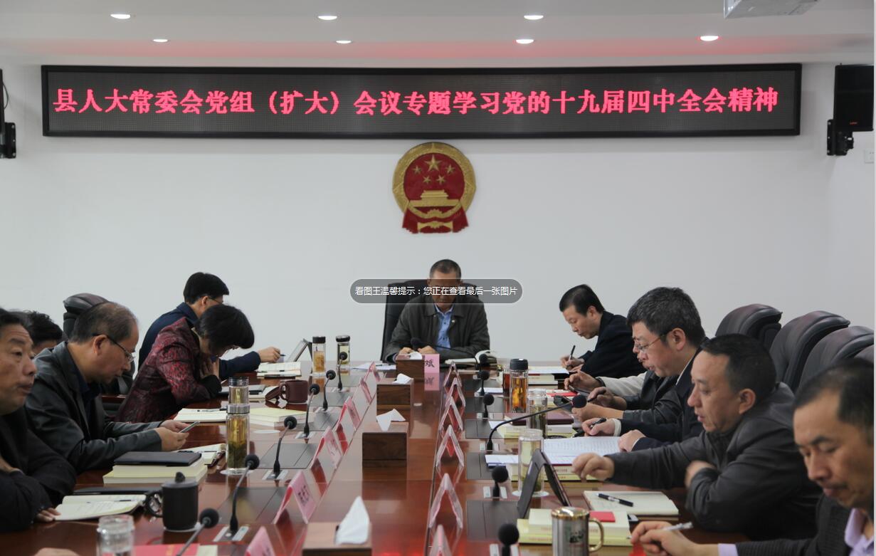 11月4日,县人大常委会党组召开扩大会议,专题学习党的十九届四中全会精神。县人大常委会党组书记、主任易大斌主持会议。