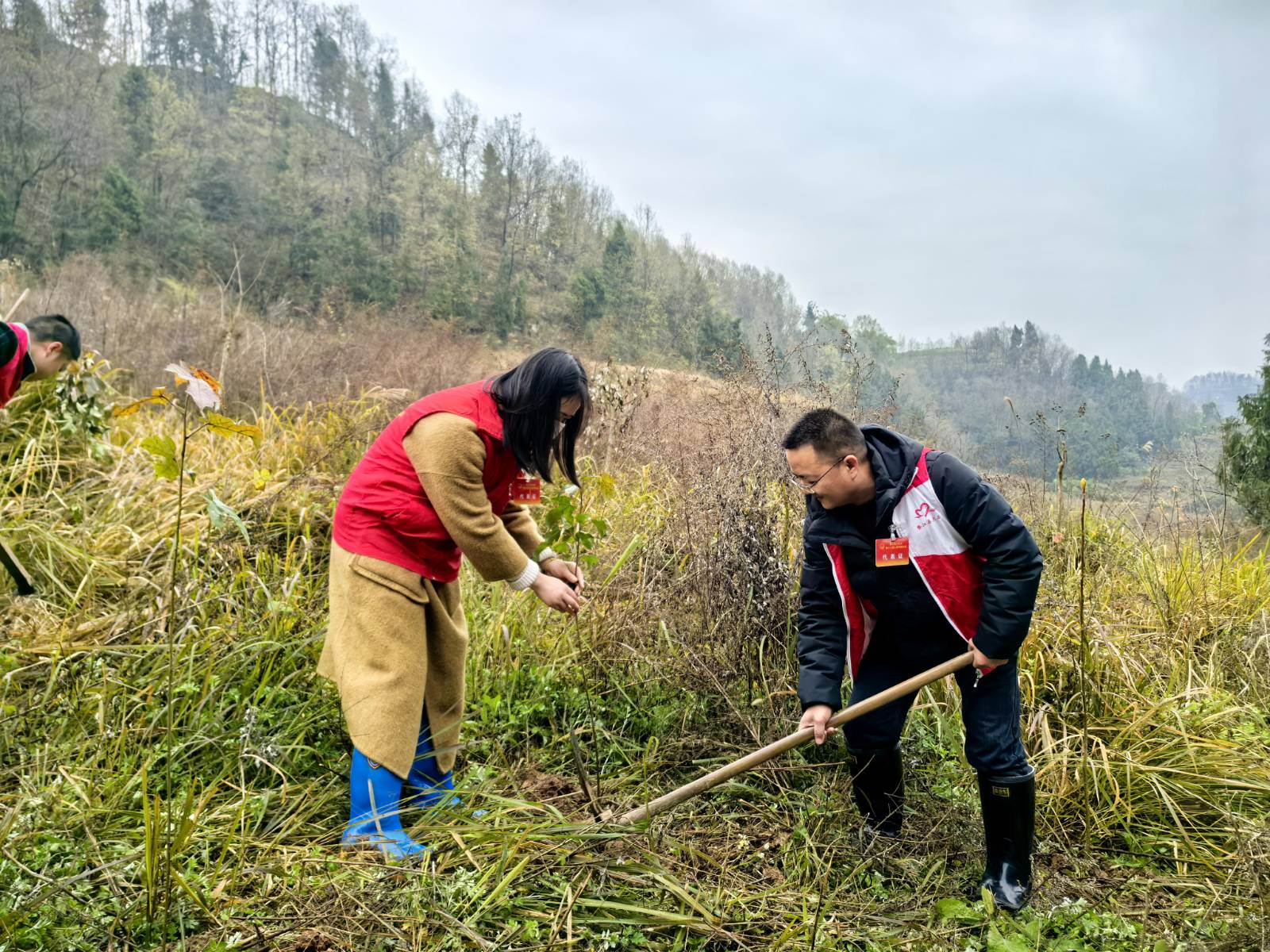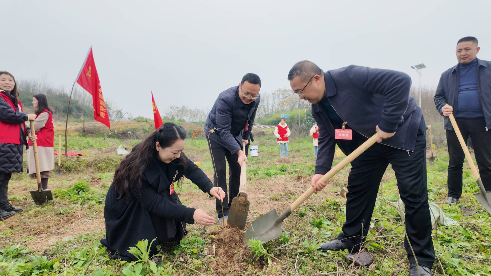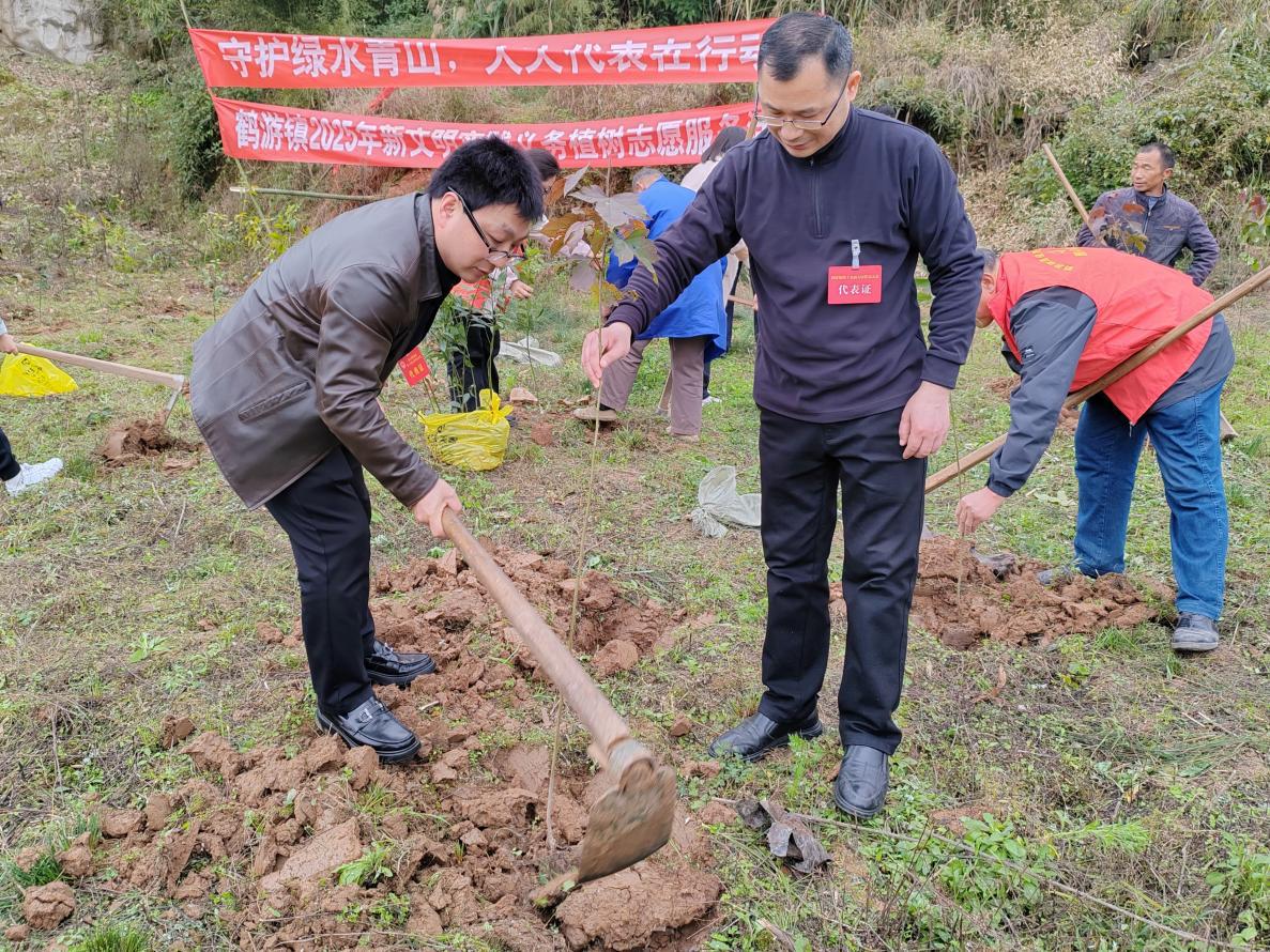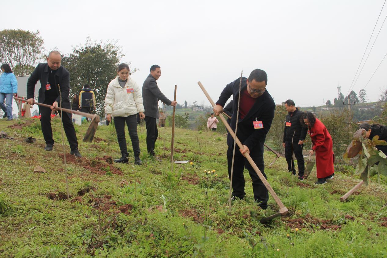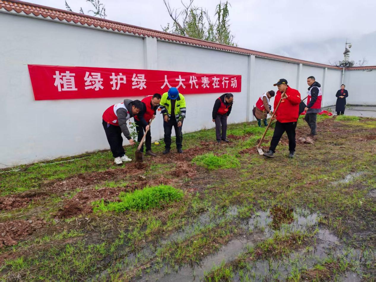 代表们热情高涨,挥锹铲土、扶苗填坑、踩土压实、提水浇灌……在植树过程中,代表们还不时交流植树经验,积极向周边群众宣传植树造林的重要性,鼓舞更多的人参与到生态保护行动中来,为助力乡村振兴,共建绿色家园贡献力量。