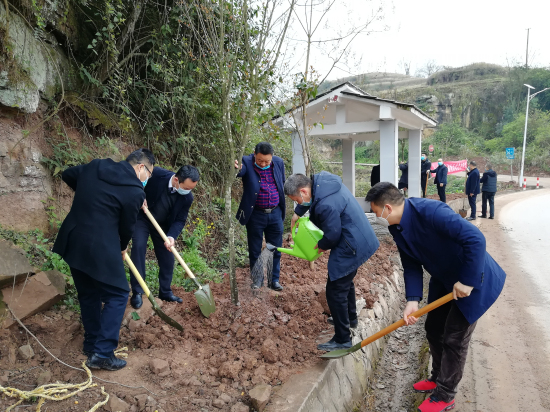 3月12日,大石乡人大组织部分县乡人大代表和政府机关干部积极参加义务植树活动。