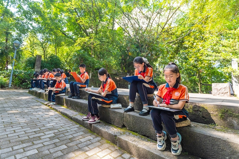 “美术课上,孩子们背着画夹去公园写生,银杏树下、古亭廊间都是天然教室。”凤山小学美术教师蒲德梅的手机里存满学生作品,画面上的蓝天白云与笑脸格外生动。
