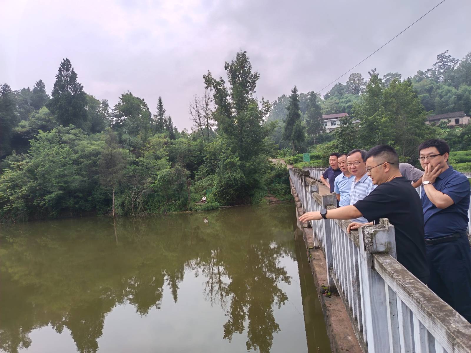 黄良平一行前往鹤游镇盐井溪水库、澄溪镇河堰口水库、太平镇廖家槽水库等地,结合民生实事项目主要内容,对照工程量完成清单,详细了解隔离防护网、多功能浮岛、视频监控系统等建设情况。